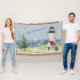 Charming Watercolor Lighthouse Coastal Scene Name Throw Blanket