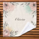 This personalized trendy wash cloth features charming sketchy flowers on corners with soft watercolor textures in blush pink and mint green.