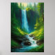 Discover a serene haven—a peaceful green forest where nature's embrace reigns. A charming waterfall cascades gracefully, its soothing melody resonating through the air. Amidst the tranquility, the forest and waterfall unite to create a symphony of calm and beauty.