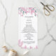 © Socialite Designs & LICENSORS. Beautiful pink and green wisteria flower watercolor wedding program ready to be personalized for your special event. The details of your wedding are surrounded by elegant hanging wisteria flowers. The front of the program has your names display, the venue name and location, the ceremony proceedings, and a thank-you message. The back lists the names of the wedding party. Font style can be changed. Need HELP with customizing or additional products with this design? Please do not hesitate to contact Socialite Designs.