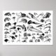This chart was drawn over 100 years ago by “Millot” and included in an encyclopedia set. The images include bills of 50 different species of birds, a fossil, and one lonely turtle. Great for biologists and the bird lovers!
