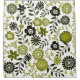 Floral Pattern of stylized images of flowers and branches in olive green and chartreuse colors.