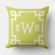 Chartreuse Greek Key Custom Monogram Initials Throw Pillow