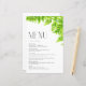 Chartreuse Green Fern Leaves Wedding Menu Card
