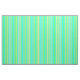 This design features a pattern of stripes having colors like chartreuse, tan, and cyan.