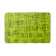 An abstract design in black and charcoal gray adorns a chartreuse background on this trendy bath mat.