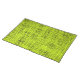 This cloth placemat features an abstract pattern on a chartreuse background.