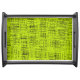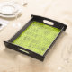 This modern serving tray features an abstract pattern on a chartreuse background.