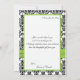 This black and white damask thank you card with lime green PRINTED ON ribbon and jewels brooch matches the wedding invitation shown below. There is also a greeting card style thank you card, if you prefer that. The text and type of paper is all customizable. If you require any other matching items, please email your request to niteowlstudio@gmail.com.