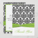 Chartreuse, White, Black Damask Thank You Card