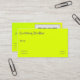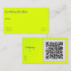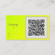 Business card template with bright Chartreuse yellow solid color background ,QR code and calligraphy style gray fonts .Simple and trendy design by Alma Wad .Personalize both sides now - change to cover image to your own code .It comes 100 in a pack .