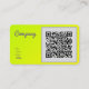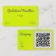This business card template features a bright chartreuse yellow solid color background, perfectly complemented by a QR code and hand-lettering style gray fonts. The use of Pacifico font and rounded corners adds a playful and creative touch to the design. Personalize both sides now by swapping the cover image for your own custom QR code. The card comes in packs of 100, providing great value and style.