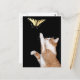 Orange and white tabby kitty cat reaching for a yellow and black tiger swallowtail butterfly