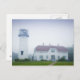 Historic Chatham lighthouse emerges from the fog on Cape Cod. Customize this postcard for any occasion!