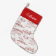 Perfect! Exactly what I ordered! I uploaded a picture of my blue chow, and the screen print was incredible. the back side of the stocking was the red and black checkered print. my puppy's name was also printed on the cuff of the stocking. PERFECT! Highly recommend this product! My puppy's name was screen printed onto the cuff of the stocking, the font was perfect!
