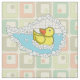 Chaucer the yellow rubber ducky floats among the bubbles in a bathtub, waiting for his next adventure. This fabric is great for any craft project for a kid's room or toys.