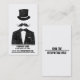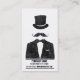 Chauffeur Business Card with top hat, tuxedo, mustache, and bow tie graphic. Card has a grunge feel to it. Fully customizable, enter additional information on back of card. Perfect for a chauffeur, limo driver, taxi driver, or courier.