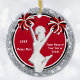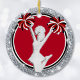 Cheap Cheer Ornaments Red, White, Black and Silver or CALL Designer Linda: 239-949-9090 to CHANGE to your cheer squad gifts COLORS, Design, Sport or you or Designer Linda can TRANSFER this design to your choice of THOUSANDS of other personalized cheerleader gifts for cheerleaders and coaches. You can change the Red Background and White Text but only Designer Linda can CHANGE the Silver colored printed Glitter looking design, Pom Poms and Cheerleader. Inexpensive cheerleader senior night gifts too.