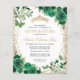 Modern Glam Floral Botanical Emerald Green Gold Tiara Sparkle Glitter RSVP Birthday Quinceañera Invitation