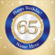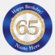 Cheap Sapphire Blue, 65th Birthday Stickers with his or her NAME, Birthday DATE or YOUR TEXT or Delete. You can also TRANSFER this to THOUSANDS of other 65th birthday party supplies, decorations and gifts.