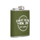 Well made flask, a little better than I had expected. Flask came in clear plastic box which gave it a nice presentation when I took it out of the zazzle packaging. Image is not printed on flask but on sticker. Don't know how this will hold up I haven't used it yet. This would make a Great gift! I plan to purchase more for friends! Cheers. I thought a little brighter than computer. Very crisp, writing wasn't