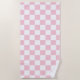 Check Baby Pink And White Checkerboard Pattern Beach Towel