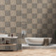 A warm neutral crackled paint texture in a checkerboard pattern evokes an esthetic vibe for traditional, cottagecore, and farmhouse to bohemian and gothic styles. Check Crackle Texture Beige And Taupe Wallpaper