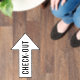 Directional arrow with "check-out" in simple typography. Customize the text inside the arrow if desired. You can also change the colors of the arrow and text to your company's branded colors by editing in the design tool. The default measurements are approximately just under 14 inches long and 8 inches at the widest part of the arrow. You can change the size on the product page if needed.