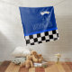 Cute simple white car graphic art on a blue, black and white with electric blue stripe patterned baby blanket. Would make a great baby shower gift, or newborn present for a little newborn baby boy. Personalize with your baby name. Original art and design by Sarah Trett.