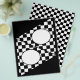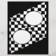 Cut out and connect checker flags to form a banner. With a permanent black marker add a letter in the white circle of each triangle flag to form the words that you want on the bunting.