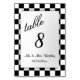 Black and white check flag with white number for your race theme affairs. Add the newly married couples name and the date to make this a unique memento that lasts.