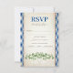 This RSVP card comes adorned with a blue picnic checkered tablecloth design that matches my green park tree suite. The vintage paper design is carried over to the back of your wedding response card. Perfect for summer weddings, backyard I do bbq, cookout, family gathering, retirement party or whatever you like. This is a high quality unique design. To see more invitations visit VG Invites at www.zazzle.com/vginvites