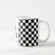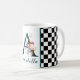 Beautiful coffee mug with fancy florals and large letter / initial A with a black and white checkerboard border. Personalize with first or last name