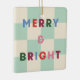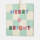 Created to coordinate with the "Checkerboard Merry & Bright" holiday card collection, this whimsical Christmas ornament features the phrase "Merry & Bright" in bold, colorful lettering, placed over a modern, mint checkerboard pattern. The back of the ornament has space for a customer photo.