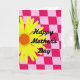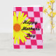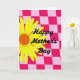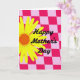 This Mother's Day card features a large daisy-like flower on the left, cropped so it feels close and generous, like a hug ❤️. Its bright yellow petals spread out from a rich orange center, drawing your eye right away. To the right and behind it, a checkerboard background alternates hot pink and soft rose squares, giving the scene a fun retro beat. The contrast between the sunny flower and the punchy pattern creates a friendly, affectionate energy, like a warm look shared between loved ones 👩. The message “Happy Mother’s Day” sits over the middle-right area, slightly angled to follow the sweep of the petals. The lettering is in deep black and stands out clearly against the pink tones, with the words arranged as one flowing line across the patterned backdrop. The flower’s yellow petals and orange center overlap the left edge while the pink-and-rose checkerboard fills the rest of the front.