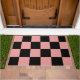 Are you looking for a doormat that has a modern twist on the tradition check pattern? This doormat has a checker pattern made up of pink and black squares.