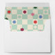 Created to coordinate with the "Checkerboard Merry & Bright" holiday card collection, this whimsical Christmas envelope features a modern, mint checkerboard design and space for the card recipient's name and address. There is space on the back flap for the customer's address. The inside of the envelope features a coordinating checkerboard pattern adorned with a bunch of festive stars.