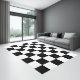 Checkered area rug in black and white with a regular square pattern