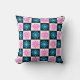 Checkered Aster Pink Blue Floral Abstract Throw Pillow