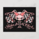 A biker chick skull and checkered flags, pink & black, with a Maltese Cross and, "Biker Chick" in script lettering. T-shirts, hoodies, cards, gifts.
