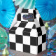 Make your party favors memorable with lunchbox style favor boxes featuring a bold black and white checkered pattern made of rows of alternating white and black squares.
