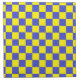 Abstract digital art of blue and yellow squares in a checkered formation.