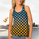 Add a pop of bold retro graphics to your wardrobe with the Checkered Blue and Yellow Sunset Monogram Tank Top. Personalize with your monogram initials on back.