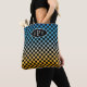 Checkered Blue and Yellow Sunset Monogram Tote Bag