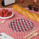 Checkered Burgundy and Silver Paper Plates