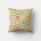 Checkered Colorful Retro Flowers Pattern Throw Pillow