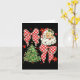 Checkered Coquette Bow Santa Claus Christmas Holid Card