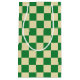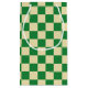 Abstract digital art of dark green and beige squares in a checkered formation.