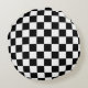 Checkered finish flag auto racing pattern custom Round Pillow. Speed car race flag design. Black and white or custom color. Cool cushion for chair, bed, sofa etc.