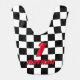 Personalized checkered flag auto racing baby bib for 1st birthday. Cute automative theme design for little kids and speed race car driving fan Black and white check pattern with dynamic sports typography. Fun gift idea for baby shower or 1st 2nd 3rd Birthday party. Customizable number one and text, like Little racer or boys name.